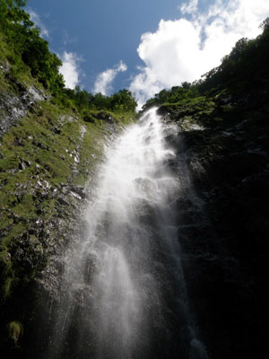 その終点にはワイモクの滝といわれる高さ約120mの滝がそびえ立っています。