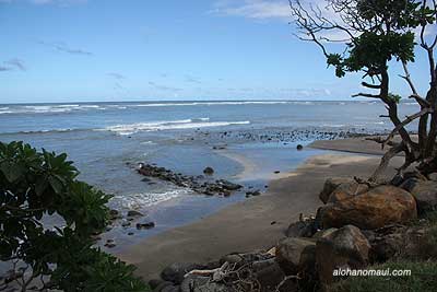 自然豊かで人がほとんどいないビーチ。海底神殿と呼ばれる場所があったそうで、ククイの実を二つに割ってお告げを聞いたとか・・・