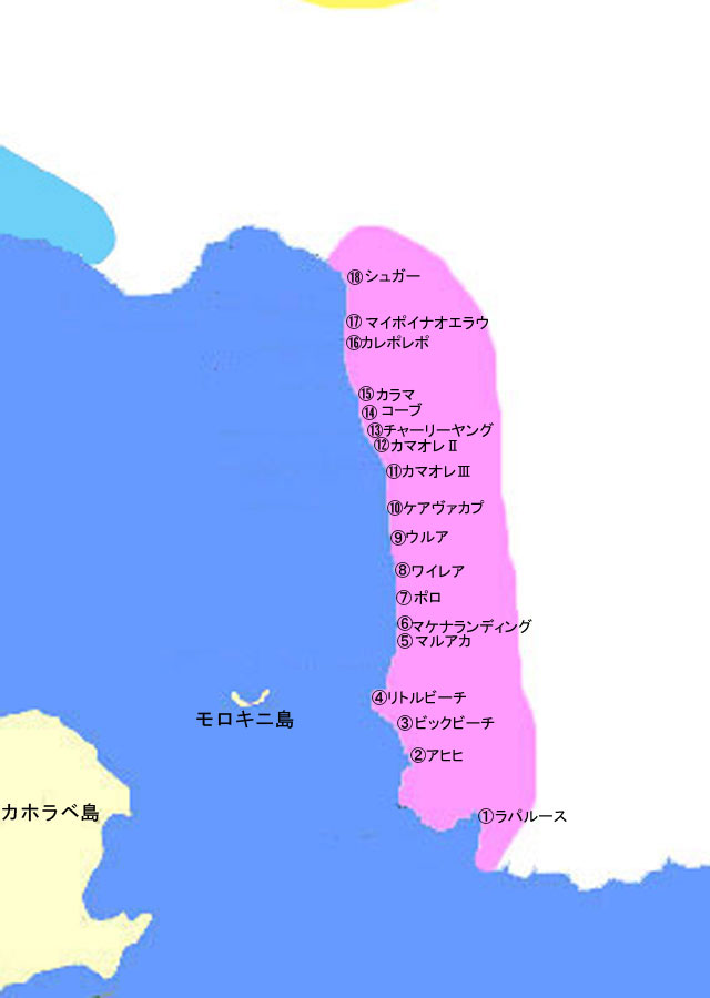 Aアヒヒ・ベイ Bビッグ・ビーチ(オネウリ・ビーチ)