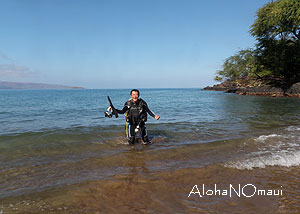 一番上の写真ある場所からエントリーするのですが通常は腰ぐらいの高さの波が入ってくることがよくあります。そのとき湾の手前側は濁っていてスキューバーやスノーケリングには適さない場合がありますのでご注意ください。