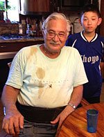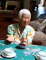 京都生まれで、皇室の教師として働く父と共に東京へ移住。第二次世界大戦後GHQでマッカーサー元帥の通訳として働く。現在はマウイに住む娘さんを頼ってキヘイに住み。トムさんと誕生日を共に祝い合う仲間。