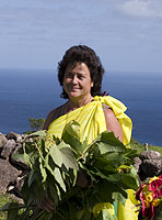ハナのビーナス・プール近くに住む、フィリピン系ハワイアン。冠婚葬祭があると一緒に秘密のがけ下に行ってオピヒ(アワビの味に似たハワイの一枚貝)をとったり、弊社のオーバーナイト・ツアーで庭にテントを張らせて頂いたり、誰も行かないブラックサンド・ビーチへアクセスするためのロープを貸してくれたり、とてもよくして頂いている。