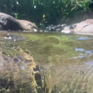 山に雨が降るとすぐそばにプライベートな川が流れ、