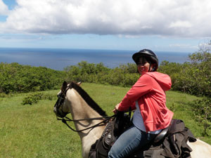 馬に乗ることはエンジンが発明される以前の、人間がもっと早く、長い距離を移動するために欠かせない事でした。そして今日では馬に乗ることでヒーリング効果があることが分かってきました。鳥のさえずり、滝の音、雨の来る匂い、常にバランスを取り続けることで五感が冴えわたってきます。そして馬との信頼関係も大事です。甘やかさないけれど厳し過ぎないようにしなければ馬の1/10以下の体重の私たちの言うことなど彼らは聞かなくなり、挙句の果てに乗せてもらえなくなります。かれらとの精神的なバランスも重要です。そしてキパフルの『マウイ・オン・ホースバック』ガイドのケオネは馬に乗ることだけでなく自然のこと、ハワイアン文化のことまで要所要所で語ってくれます。